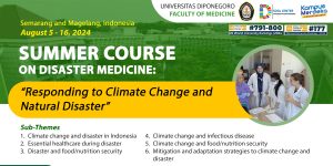 Summer Course FK Undip 2024 Summer Course on Disaster Medicine: “Responding to Climate Change and Natural Disaster”. Faculty of Medicine, Universitas Diponegoro will organize a Summer Course on Disaster Medicine: “Responding