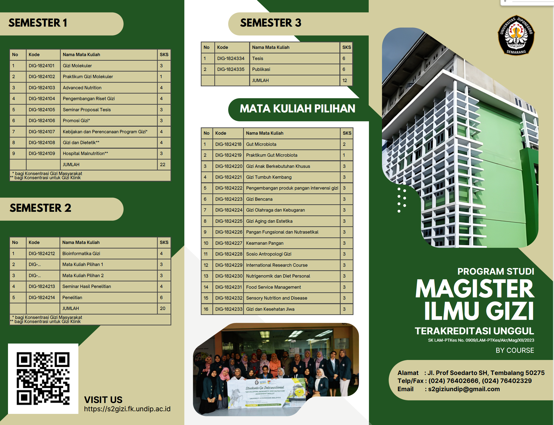 Seiring semakin kompleksnya permasalahan gizi di Indonesia, UNDIP hadir dengan kurikulum termutakhir untuk mencetak lulusan yang kompeten, kompetitif, dan mampu memberikan solusi nyata dalam bidang gizi masyarakat maupun gizi klinis.
