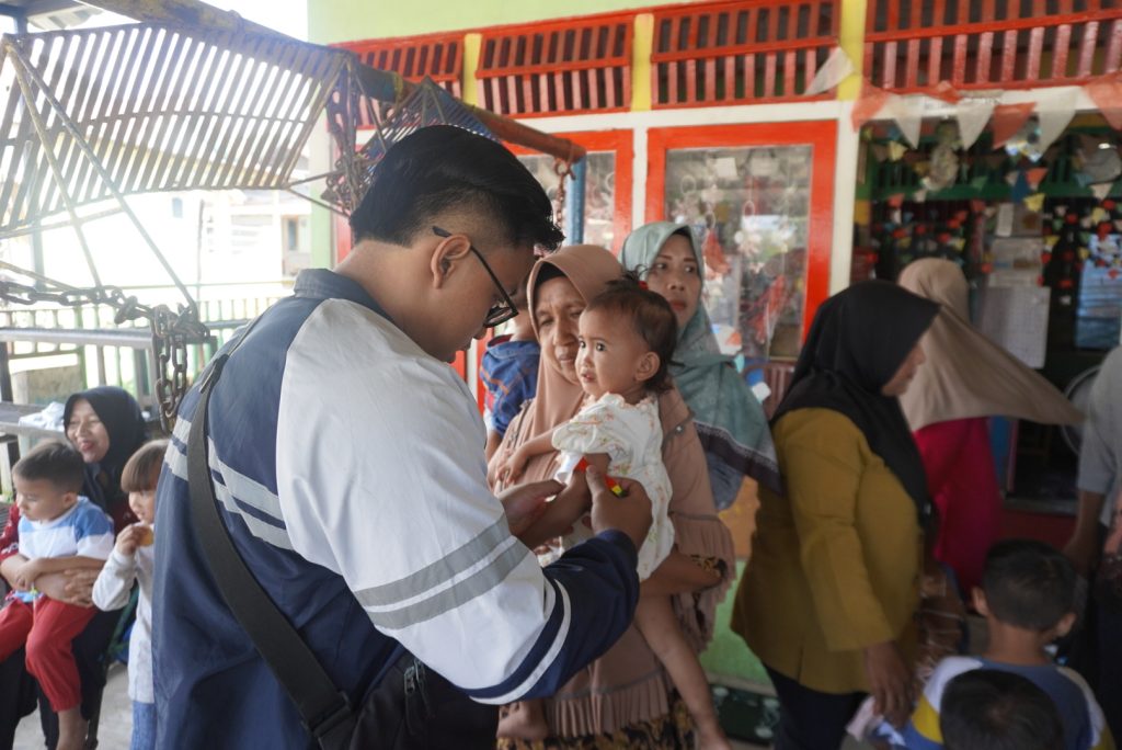 Distribusi kemudian dilanjutkan ke titik kedua, yaitu Puskesmas Koto Alam, melalui koordinasi dengan Ahli Gizi Puskesmas. Di lokasi ini, disalurkan sebanyak 75 paket makanan, dengan rincian 40 paket untuk balita dan 35 paket untuk ibu hamil. Selain distribusi, dilakukan pula skrining gizi berupa pengukuran LiLA pada balita sebagai upaya deteksi dini kasus gizi kurang maupun gizi buruk.