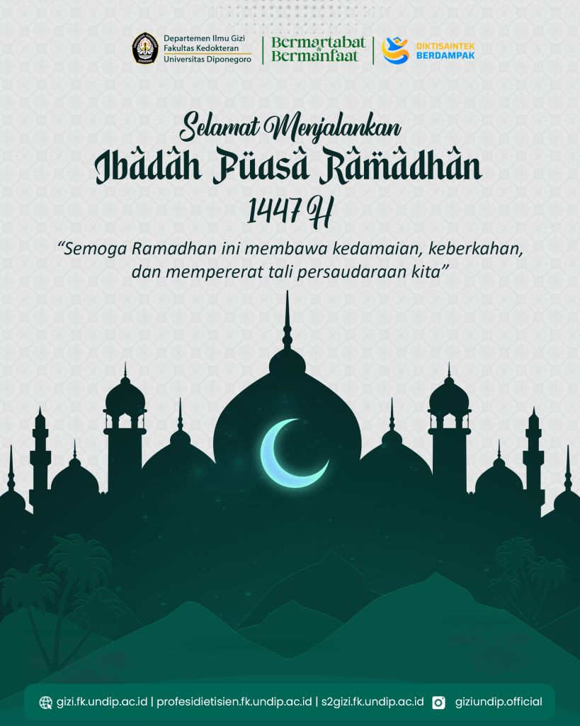 Semarang, 18 February 2026 — In welcoming the holy month of Ramadan 1447 Hijri, the Department of Nutrition Science, Faculty of Medicine, Universitas Diponegoro (FK Undip), extends its sincere wishes for a blessed Ramadan to all members of the academic community, partners, alumni, and the wider public.